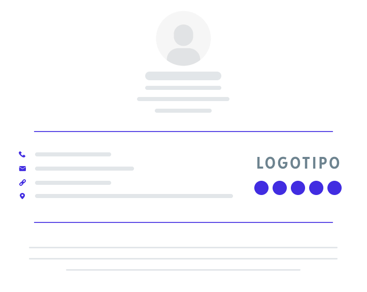 Puedes añadir nombre completo, cargo, empresa, teléfono, dirección de email, página web, enlaces a redes sociales y un logotipo o foto personal. Todo con un diseño limpio y adaptable a diferentes dispositivos.